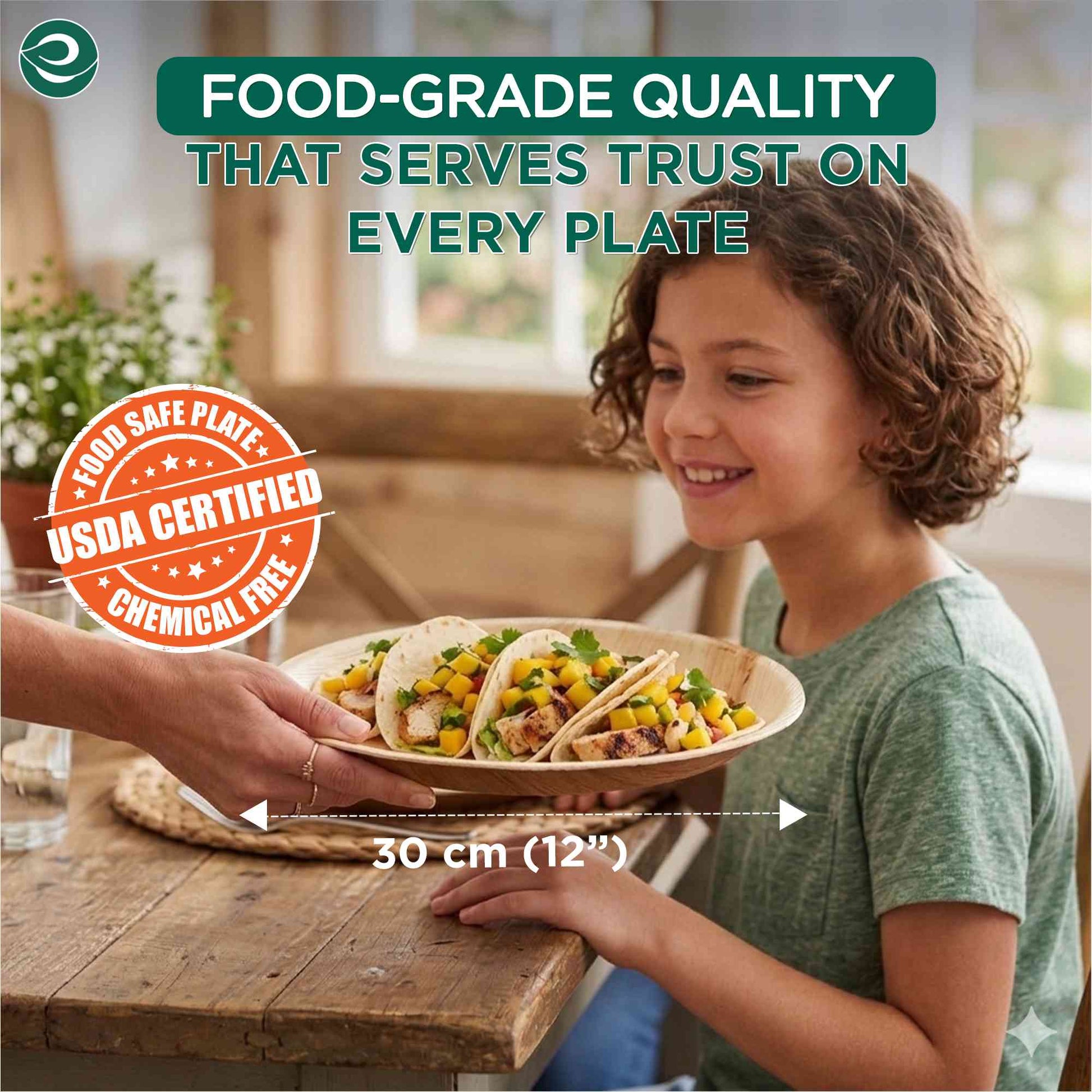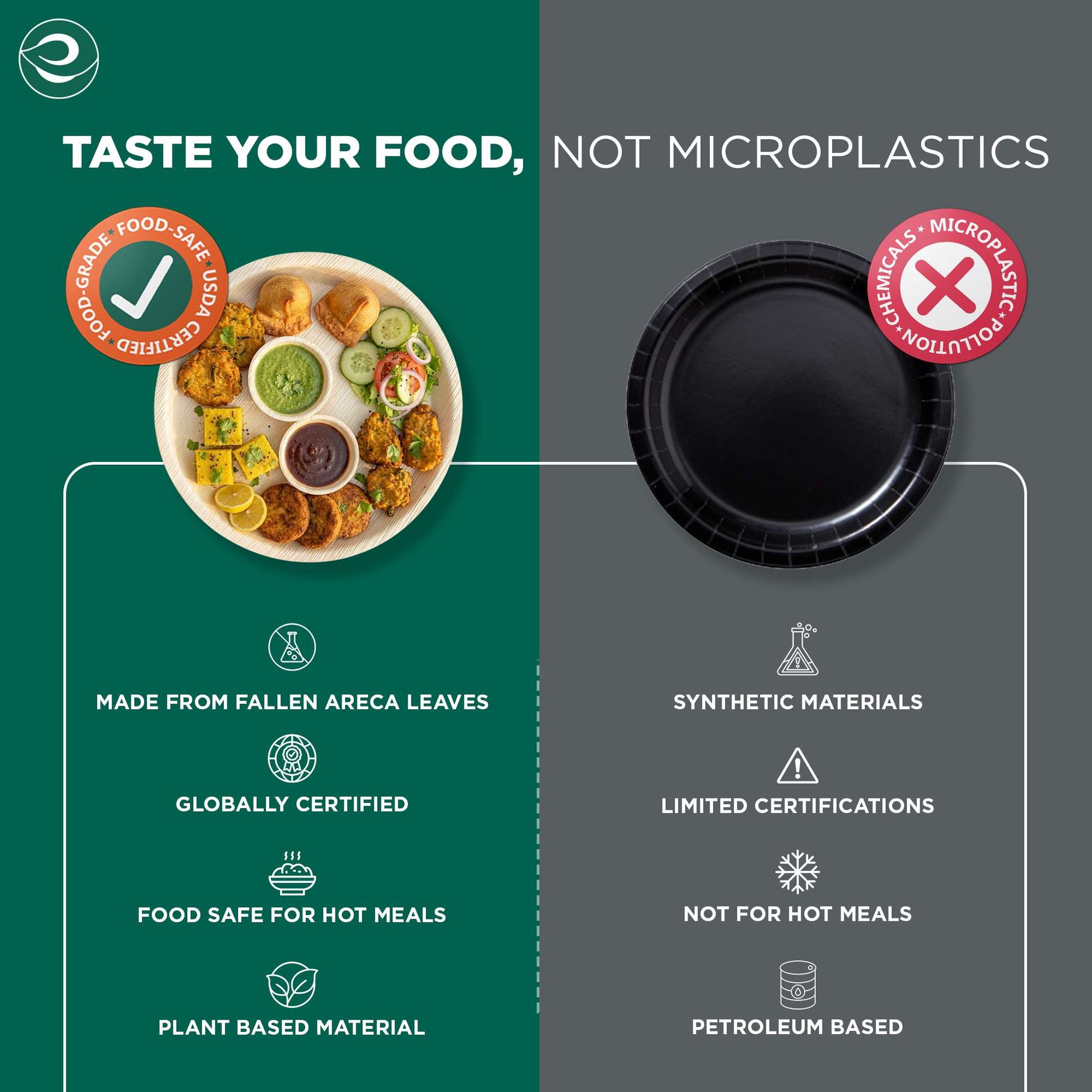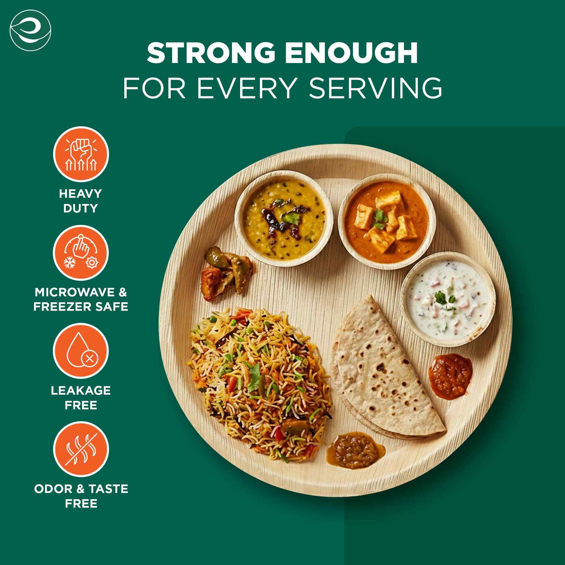 Made from naturally fallen areca leaves, safe for serving all kinds of meals.