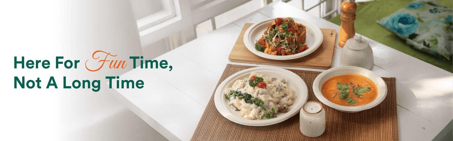 We offer an eco-friendly party tableware line for those who want to host their party responsibly. We take a modest, natural resource - bagasse (sugarcane fiber) or fallen palm leaves and convert them into daily essentials, including plates, bowls, cutlery, and entire dinnerware sets, that are just as durable and presentable as plastic, without any of the environmental costs. Our products are biodegradable and can be discarded or composted safely and sustainably, making it easy to feast with friends and family in India.