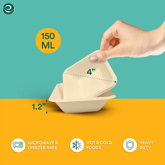 6 Inch Square Disposable Areca Palm Leaf Plates