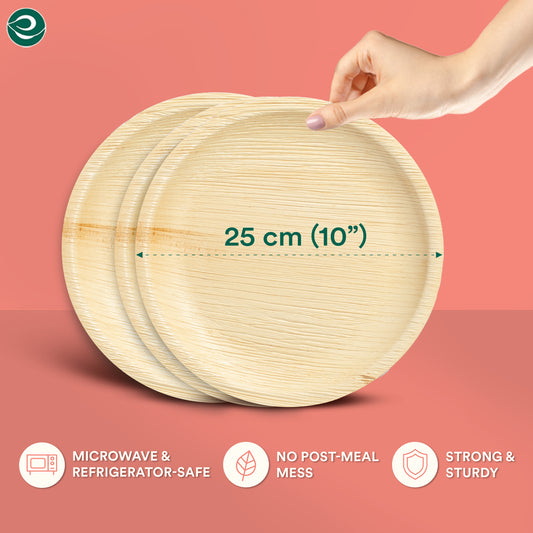 10 Inch Round Disposable Areca Palm Leaf Plates