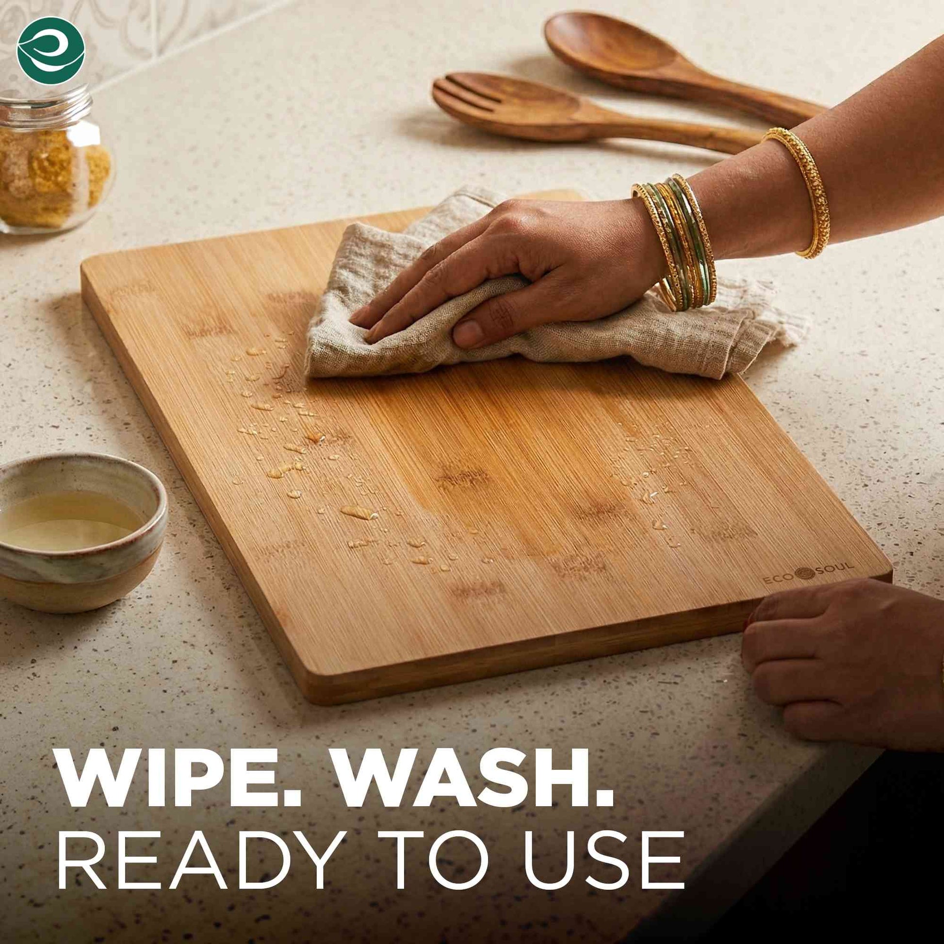 Upgrade your kitchen with ECO SOUL’s Bamboo Cutting Board—designed to bring together durability, functionality, and a naturally sustainable touch to your everyday cooking.