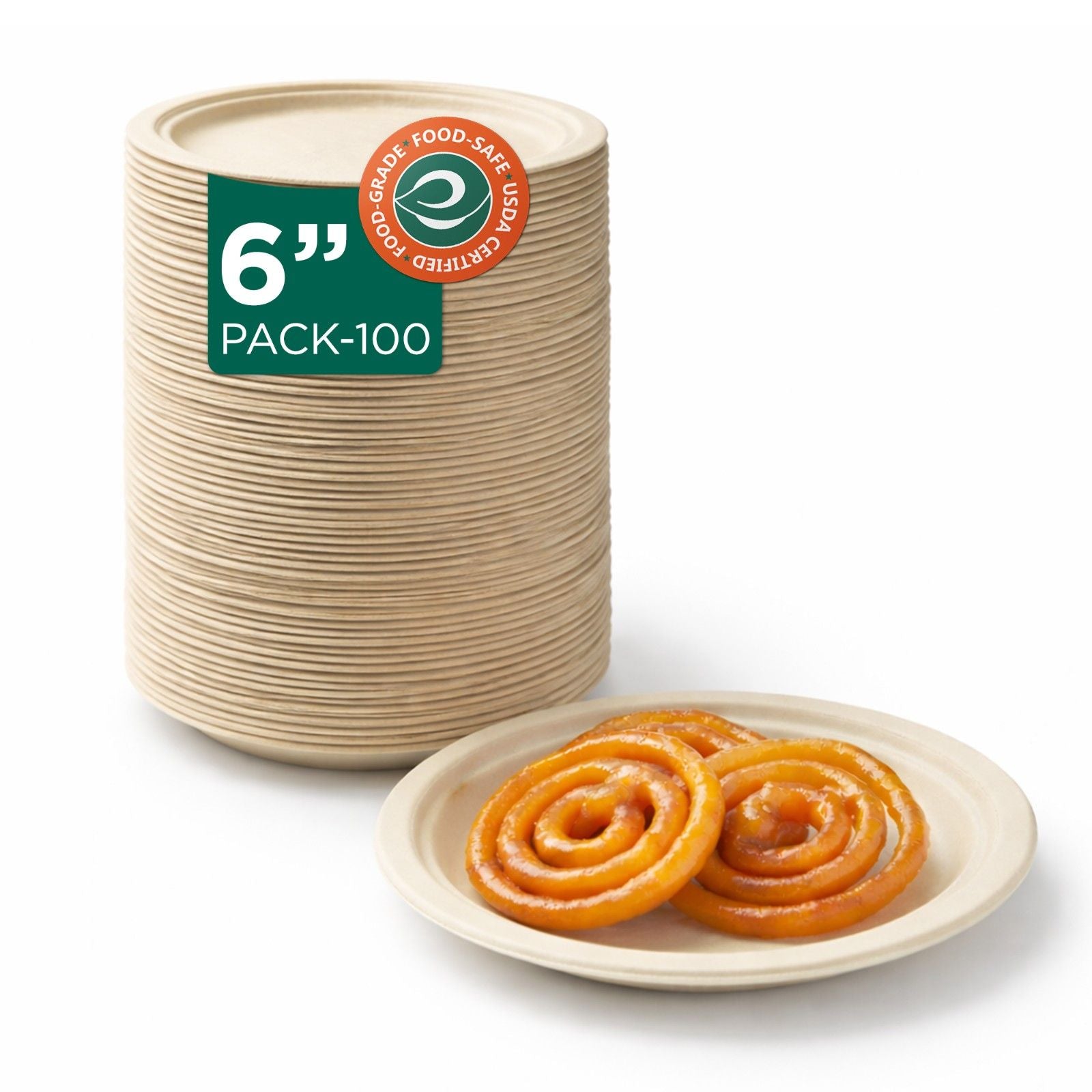 Serve every meal sustainably with ECO SOUL’s 6-Inch Round Disposable Bagasse Plates—a perfect eco-friendly alternative to single-use plastic. Made from upcycled sugarcane fiber, these plates are 100% plant-based, compostable, and durable enough for snacks, sides, and desserts. They decompose naturally within days, helping reduce landfill waste while adding a touch of sustainable style to your table.